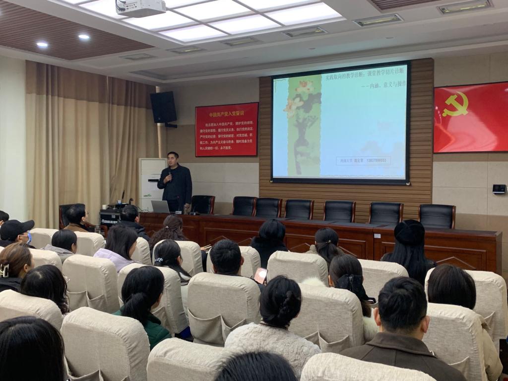 时间:2024-01-05 16:48:43 来源: 作者: 阅读: 次1月5日上午,应教育科学学院邀请,河南大学博士生导师魏宏聚教授在教科楼301报告厅作题为“实践取向的教学诊断:课堂教学切片诊断——内涵、意义与操作”的学术报告。报告会由该院副院长郭勇主持,教科院全体教师及部分研究生聆听了报告。