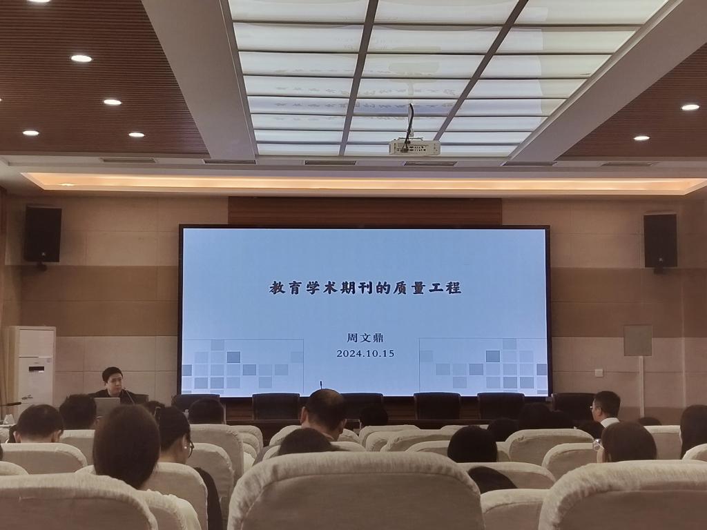 10月15日下午3点,应教育科学学院邀请,华中师范大学陶行知国际研究中心研究员、《教育治理研究》责编周文鼎博士在教科楼301报告厅做了题为“教育学术期刊的质量工程”的报告分享会。报告由教育科学学院院长何安明主持,全体教师及部分研究生参加了此次会议。