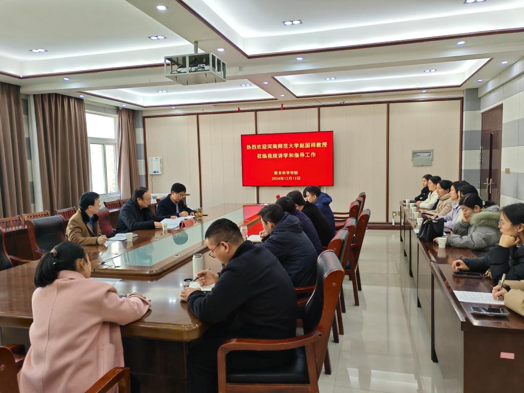 时间:2024-12-14 13:16:51 来源: 作者: 阅读: 次12月13日于教科楼402会议室,河南师范大学赵国祥教授到我院讲学和指导工作。会议由教育科学学院副院长孙天义主持,院党委书记房加帅、副书记缑星、副院长郭勇及部分教师代表参加了会议。