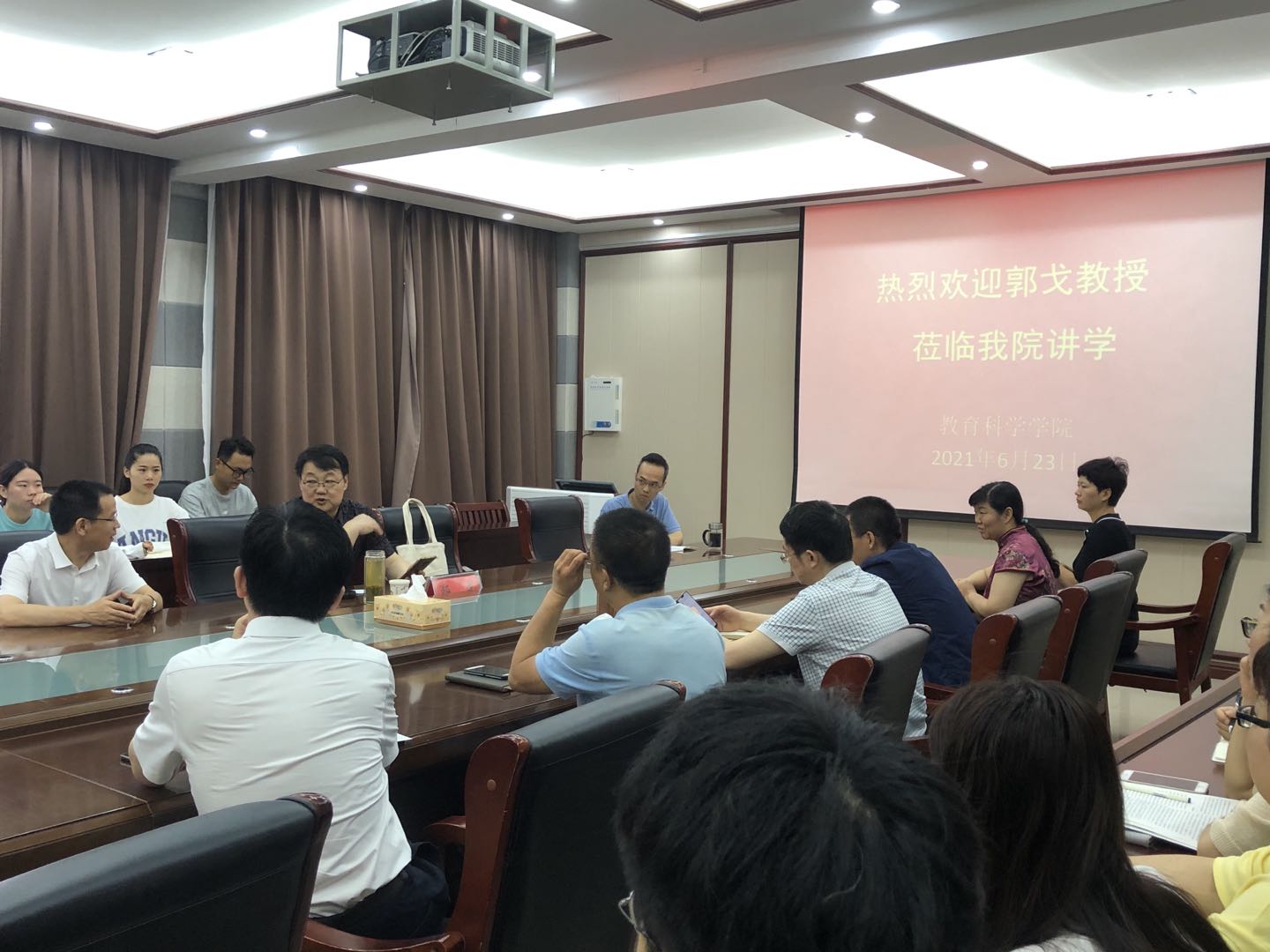623日上午9点,应教育科学学院邀请,人民教育出版社总编辑、《课程·教材·教法》主编郭戈在教科院402会议室举行了学术报告会,教科院部分教师、研究生参加了此次报告。