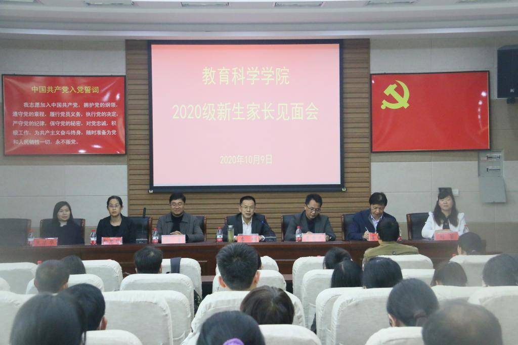109日下午3时,教育科学学院2020级新生家长见面会在教科楼301会议室举行。教育科学学院党委书记李辉、副院长郭勇、党委副书记李贵杰、各教研室主任、2020级班主任以及部分新生家长共同出席此次见面会。见面会由李辉主持。