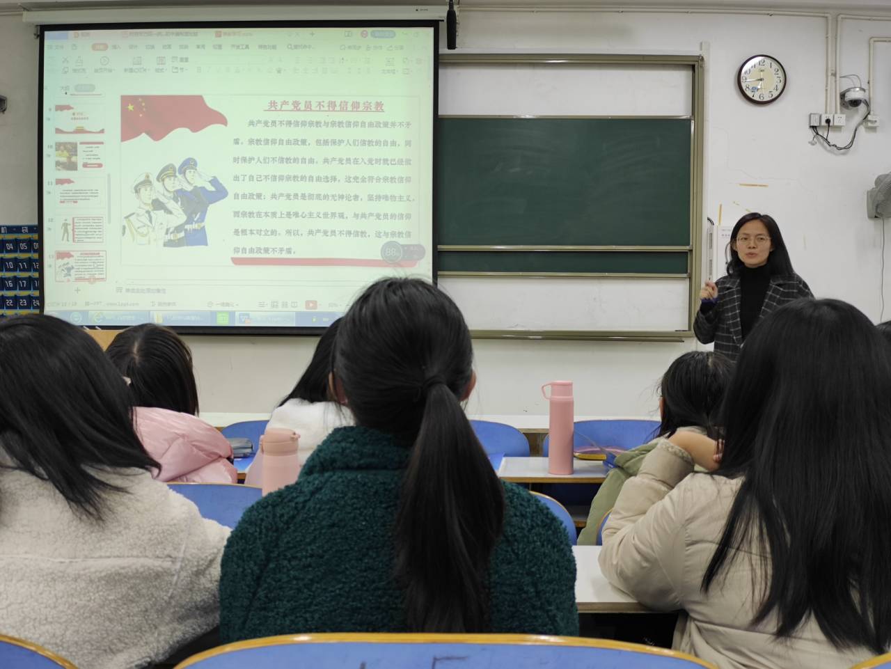 牛洁楠强调,中华人民共和国公民有信教的自由,受中华人民共和国宪法的保护;共青团员、中共党员是坚定的无神论者,不得信仰宗教;同学们要树立正确的宗教观,提高思想政治素养,用科学理论武装头脑,做坚定的唯物主义者。