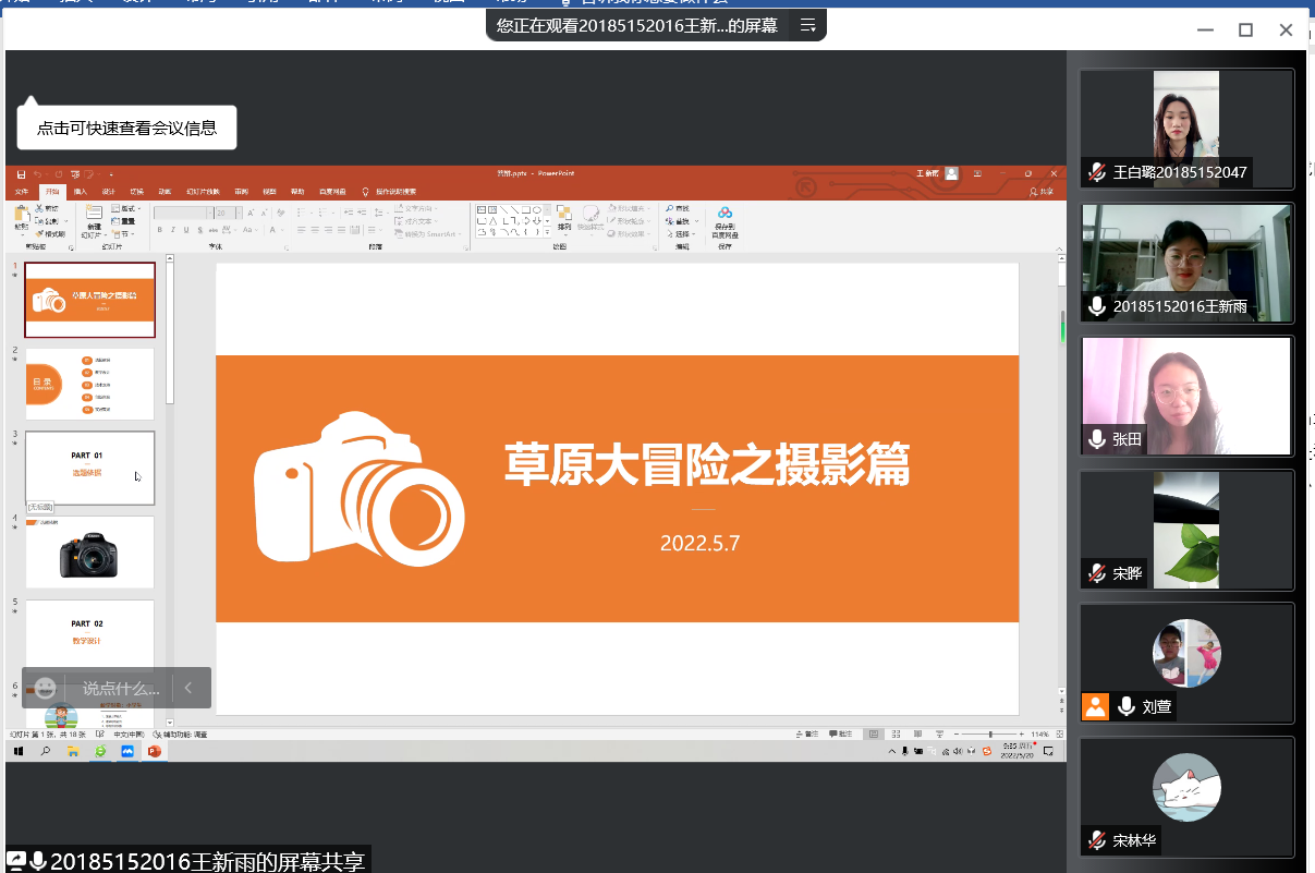 为了增强参赛选手对比赛流程的熟悉度,5月20日上午,教育科学学院教育技术学专业分别在教科楼303、410会议室举办“2022年第十五届中国大学生计算机设计大赛”省赛线上模拟赛。本次比赛采取腾讯会议的方式,以老师提问、学生演示并答辩的流程线上进行。来自我院教育技术学专业的2018级、2019级和2020级参赛学生在领队老师刘萱、刘琦、宋晔的指导下,认真了解比赛流程,积极准备参加比赛。