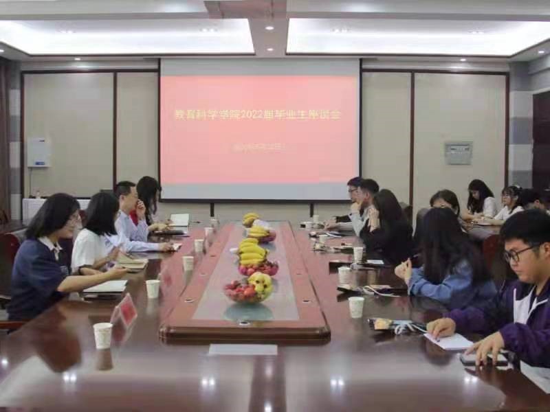 时间:2022-05-23 20:54:30 来源:教科院新闻部 作者:马玉娇 周媛媛 齐家乐 阅读: 次5月22日,教育科学学院2022届毕业生座谈会于教科402会议室召开。院党委副书记董银银,毕业生班主任张纪娥、宋晔、朱方、牛洁楠,专职辅导员杨艺卓,2022届毕业生和低年级学生代表参加会议。会议由牛洁楠主持。
