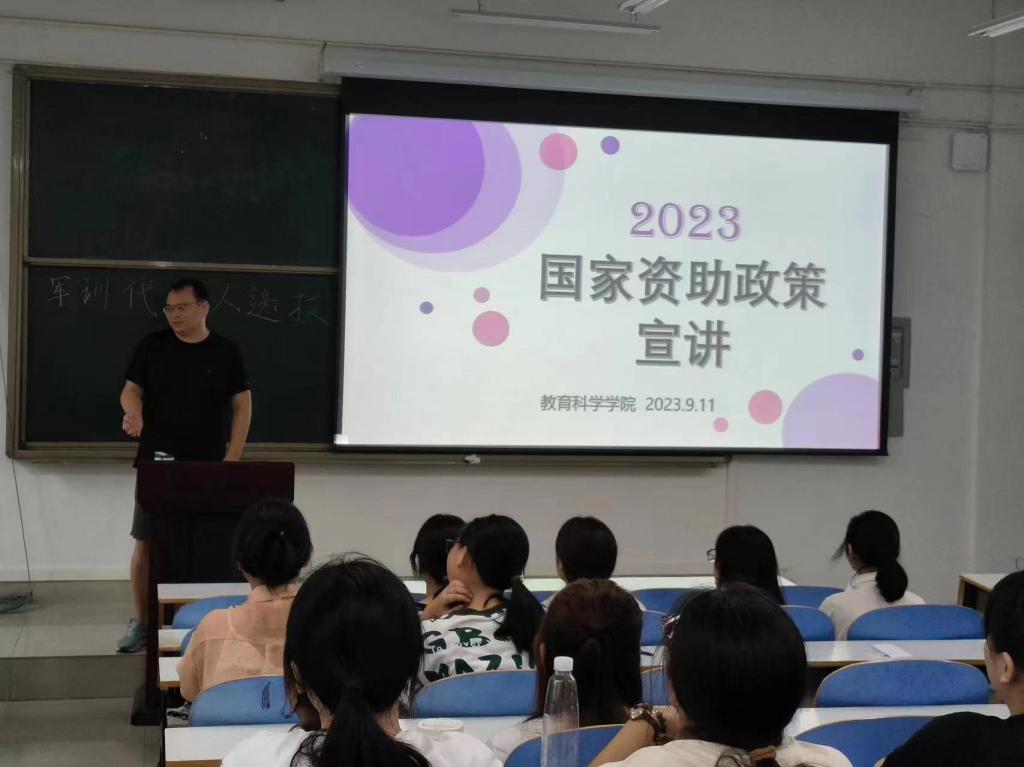 为深入贯彻落实国家高校资助政策,引导广大新生正确认识学生资助政策,9月11日,教育科学学院2023级全体班级在教科楼举办2023级新生资助政策宣讲会,各班辅导员及各班新生参加此次宣讲活动。