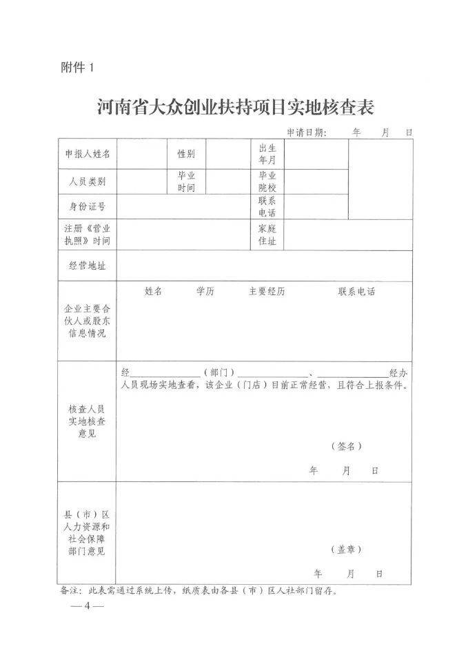 各省辖市、直管县于2019年10月31日前将审核通过的项目,进行网上操作,提交省厅。具体审核操作办法登陆内网(“河南就业创业信息系统”),点击首页右上角“?”图标,进入“文档目录”,从“系统操作说明”中下载“河南省大众创业扶持项目审核系统操作手册”。申报项目的实地核查表(见附件1)、项目汇总表(见附件2)及公示截图一并通过系统上报省厅。