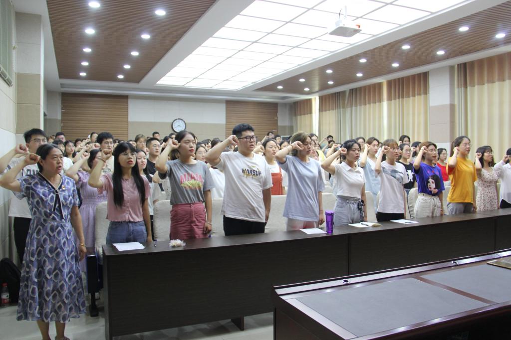 6月8日下午,教育科学学院于教科301会议室举行2021年上半年新发展党员宣誓大会和党员重温入党誓词活动。院党委副书记李贵杰、组织员张纪娥、全体学生党员以及本期发展的53名预备党员参加此次大会。会议由张纪娥主持。