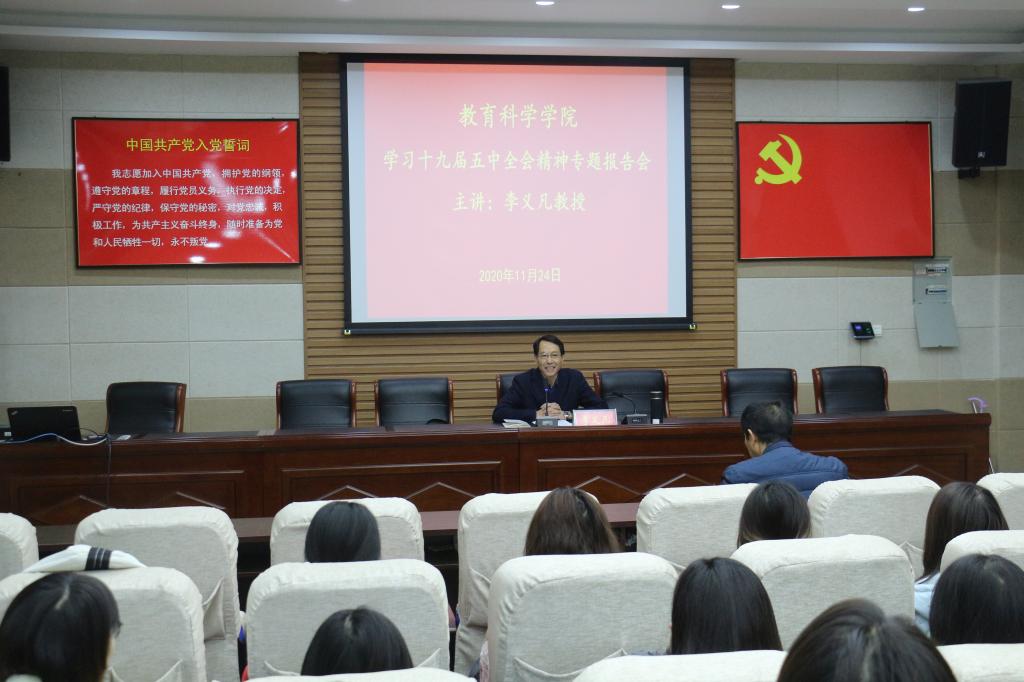 时间:2020-11-25 21:40:14 来源: 作者: 阅读: 次11月24日下午,教育科学学院在教科楼301集中学习十九届五中全会精神。由李义凡教授为教科院全体教职工及本期发展对象解读,学院党委书记李辉主持。