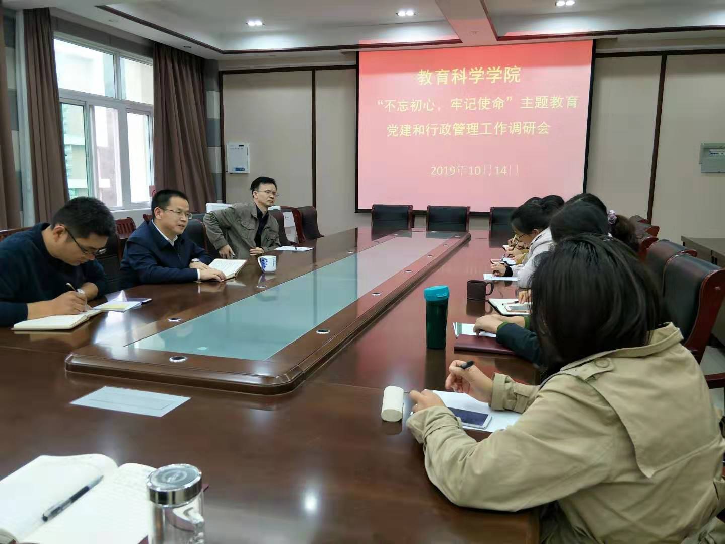 时间:2019-10-15 12:31:01 来源: 作者: 阅读: 次根据学院“不忘初心、牢记使命”主题教育活动安排,10月14日下午,院党委书记李辉组织召开党建和行政管理工作专题调研会。各教学系主任和学院行政工作人员参加了本次会议。