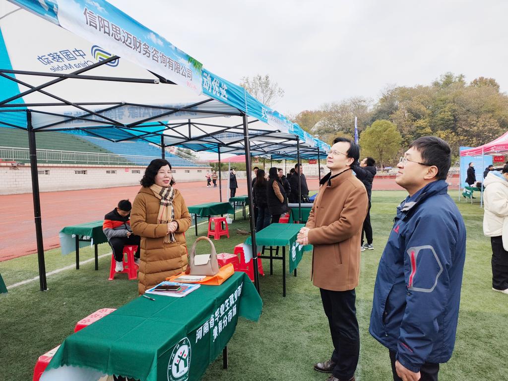 时间:2023-11-26 19:17:51 来源:教科院新闻宣传中心 作者:吴宇熙 浮梦杰 阅读: 次为拓宽我校毕业生就业渠道,把握更优质的就业岗位,进一步提升毕业生就业质量。11月25日,信阳师范大学2024届毕业生冬季双选会在西操举行,我院积极组织2024届毕业生参加此次双选会,同时也鼓励21、22、23级学生到场参观。副校长郭勇、孙天义、就业秘书杨艺卓以及各毕业班班主任到达此次双选会现场,为各招聘单位积极介绍我院优秀毕业生。