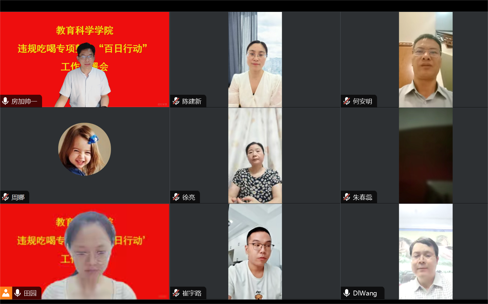 时间:2024-07-18 22:09:20 来源: 作者: 阅读: 次7月18日,教育科学学院于线上召开违规吃喝专项整治“百日行动”工作部署会,院党委书记房加帅、院长何安明、副院长郭勇、孙天义及学院全体教职工参加此次会议,会议由房加帅主持。
