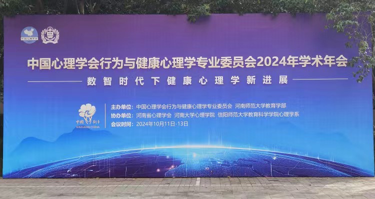 2024年10月11-13日,中国心理学会行为与健康心理学专业委员会2024年学术年会在河南师范大学顺利召开。本次年会主题为“数智时代下健康心理学新进展”,由中国心理学会行为与健康心理学专业委员会、河南师范大学教育学部主办,河南省心理学会、河南大学心理学院、多多28心理学系协办。本次年会共有6个主旨报告,22个特邀报告,120个口头报告,43个海报展贴。