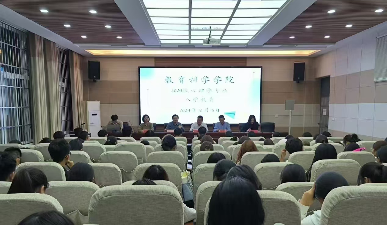 10月15日,24级心理学专业入学教育于教科楼301会议室开展。会上,心理学系主任刘湍丽介绍心理学专业基本情况,教育科学学院院长何安明、副院长孙天义对新生的问题进行了解答。刘湍丽主任、熊承清老师结合自身经历向同学们讲述了心理学的学习方法,胡亚奇老师从犯罪心理学出发,激起新生们的兴趣与专业热情。