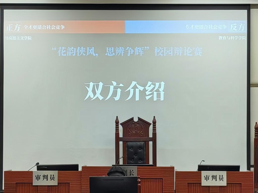 3月21日,我院与马克思主义学院于社科楼413教室开展以“全才和专才哪一种人才更适合社会竞争”为辩题的校园辩论友谊赛。