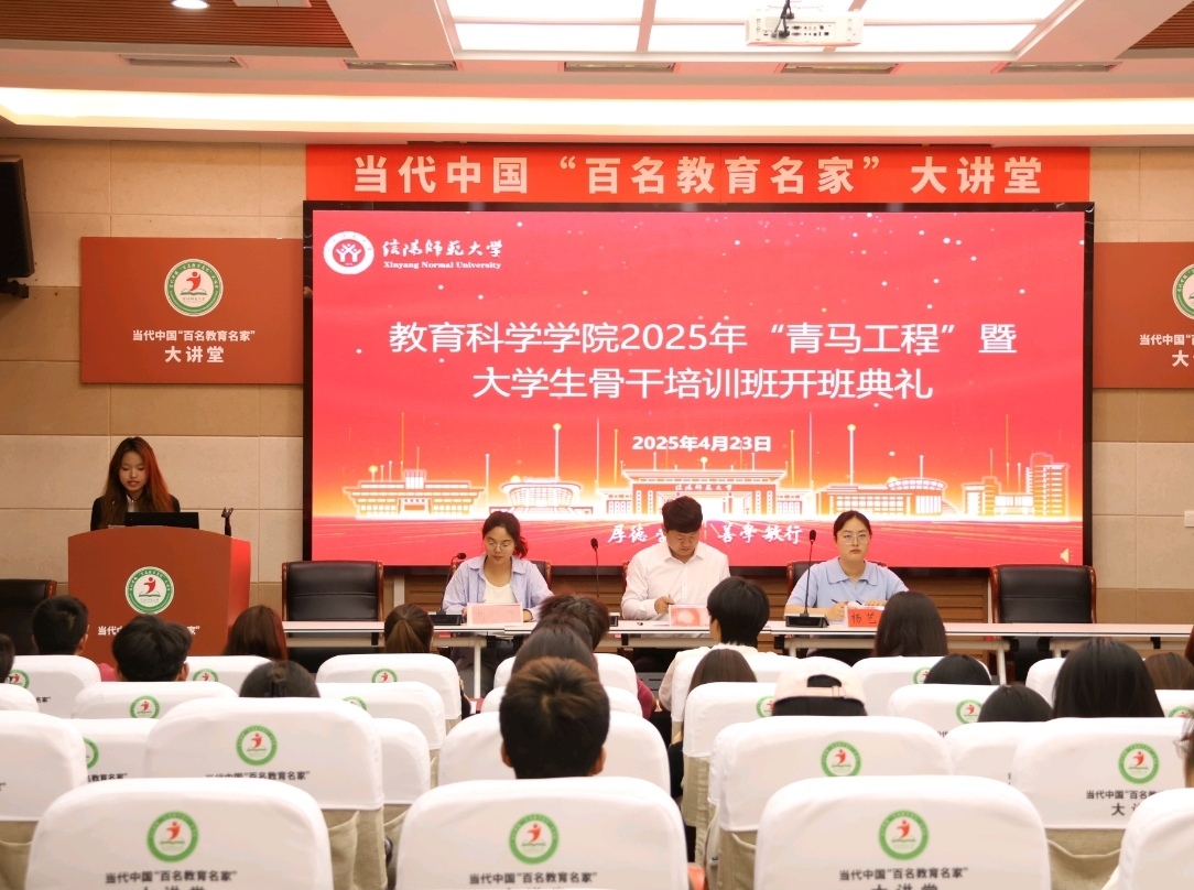 4月23日,教育科学学院2025年“青马工程”暨大学生骨干培训班开班典礼于教科楼301会议室举行,院党委副书记缑星,专职辅导员刘然然,2023级、2024级班长、团支书,院学生会学生骨干出席,典礼由分团委书记杨艺卓主持。