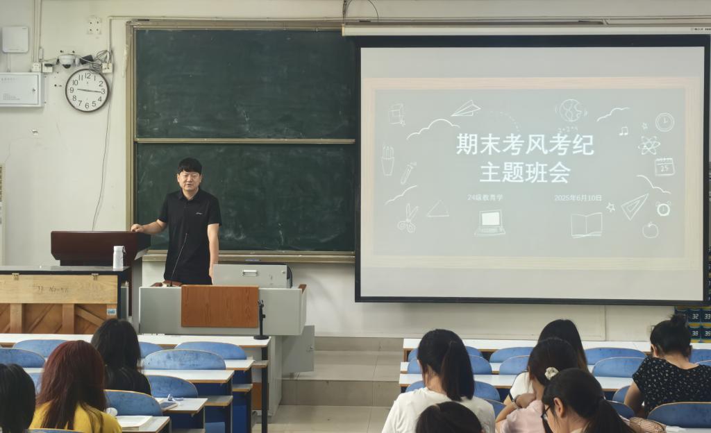 召开安全主题班会。为进一步增强学生安全意识,普及安全知识,营造平安和谐校园环境,教育科学学院组织各班级开展“期末安全教育”主题班会,围绕诚信考试、校规校纪学习、交通安全、消防安全、电信诈骗展开,切实提升学生期末的安全素养与规则意识。