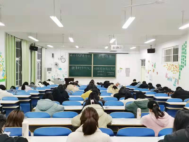 为深化学生对学校校史知识、纪律意识、校园安全意识等的了解,巩固新生教育阶段成果,12月12日,教育科学学院于教科楼各教室组织开展2021级新生校规校纪考试。