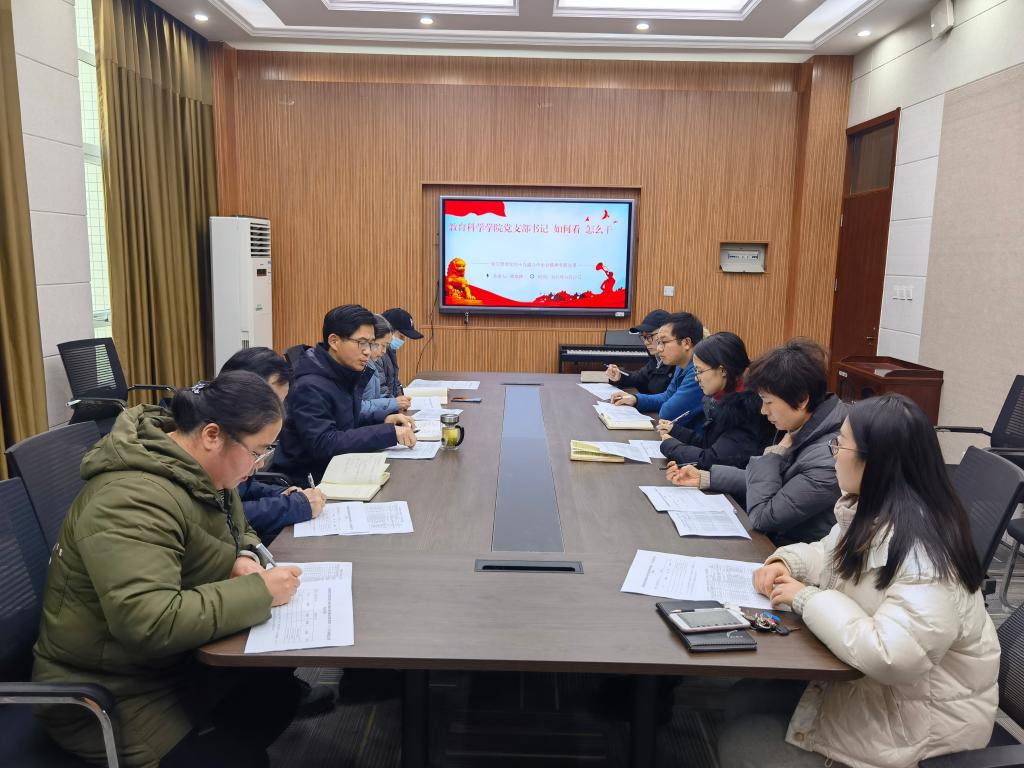 为深入贯彻党的十九届六中全会精神,提升党支部书记抓党建能力,12月27日,教育科学学院在教科楼303会议室开展以“学习贯彻党的十九届六中全会精神,提升党支部书记抓党建能力”为主题的培训会,教科院党委书记房加帅和学院全体党支部书记参加会议,会议由学院专职组织员主持。