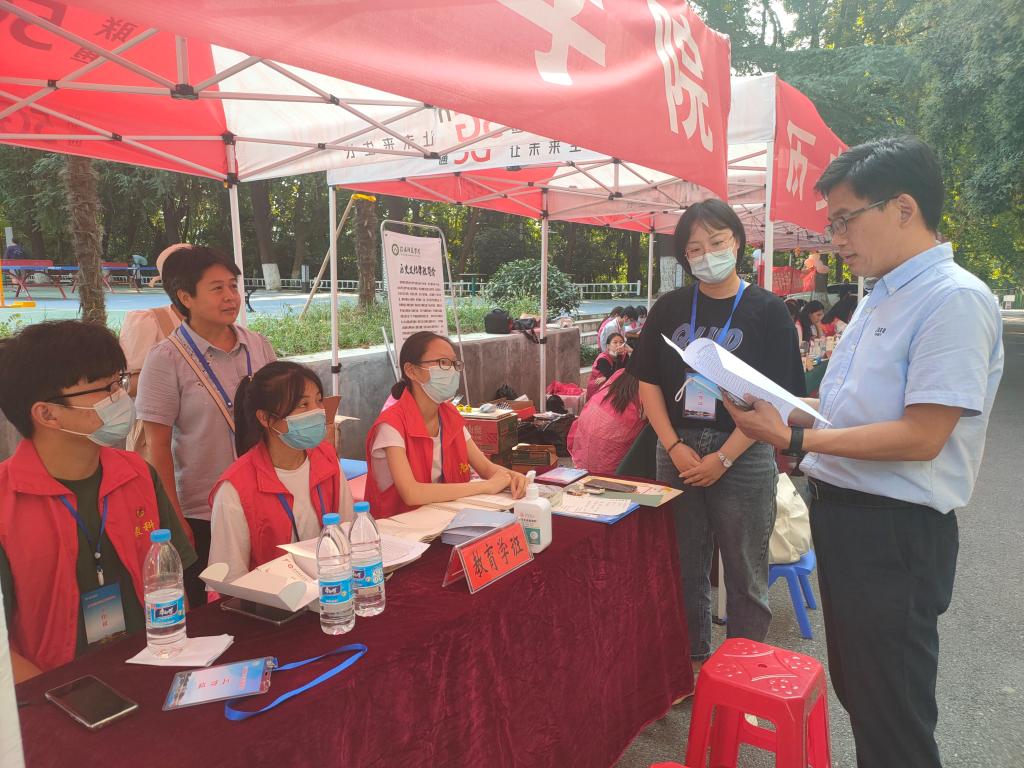 9月10日下午,教育科学学院党委书记房加帅、党委副书记董银银前往新生报道点,了解报到情况,确保迎新工作稳步推进。