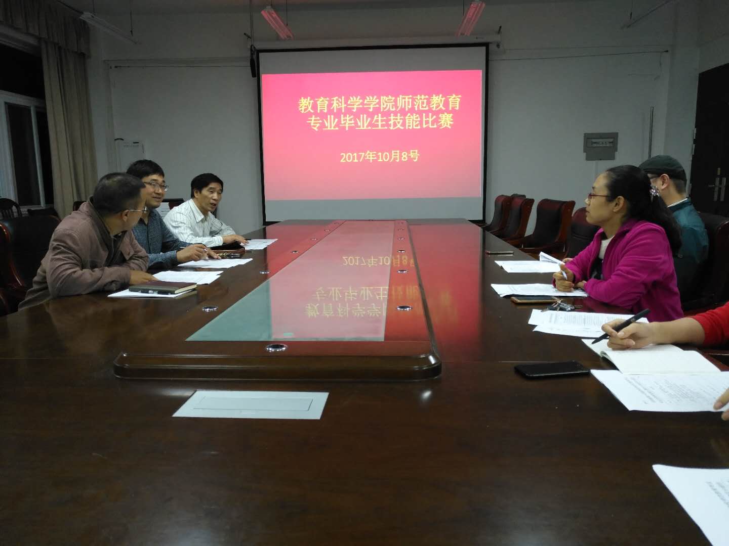为提高师范教育专业毕业生教学技能和实践能力,全面提高师范生培养质量,培养“四有”好教师,2017年教育科学学院师范教育专业毕业生教学技能大赛于108日晚在402会议室拉开了序幕。教育科学学院相关领导、院督导专家、教研室主任、指导教师和学生参加了本次比赛。