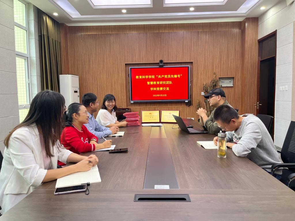 9月22日上午,教育科学学院教工第二党支部“共产党员先锋号”智慧教育研究团队于教科楼303会议室开展交流活动,副院长郭勇,团队成员刘萱、刘琦、张育桂、张立春、宋晔参加会议。会上围绕指导学生参与学科竞赛展开热烈讨论,为学院再创佳绩奠定良好基础。