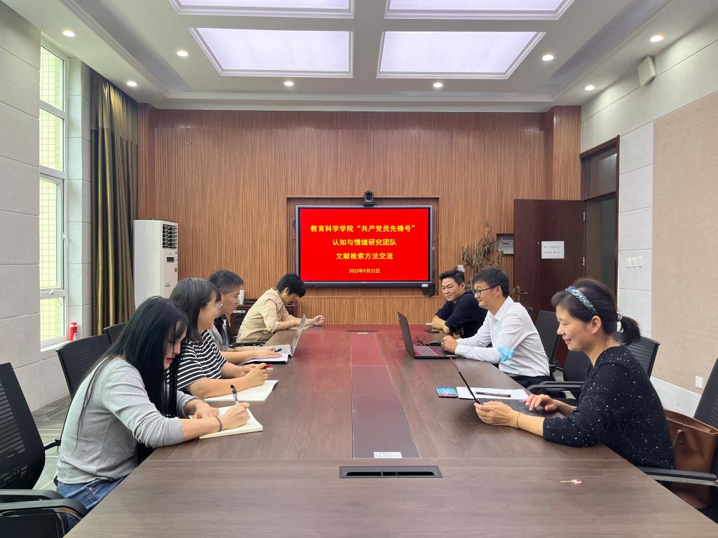 9月22日下午,教育科学学院教工第二党支部“共产党员先锋号”认知与情绪研究团队于教科楼303会议室开展交流活动,团队成员刘湍丽、邢敏、燕小辉、杨勇、杨军义、赵昕、董国珍参加会议,会议由团队带头人刘湍丽主持。会上围绕学术论文的文献检索方法进行真诚分享交流,通过学术研讨促进老师们科研方法的资源共享。
